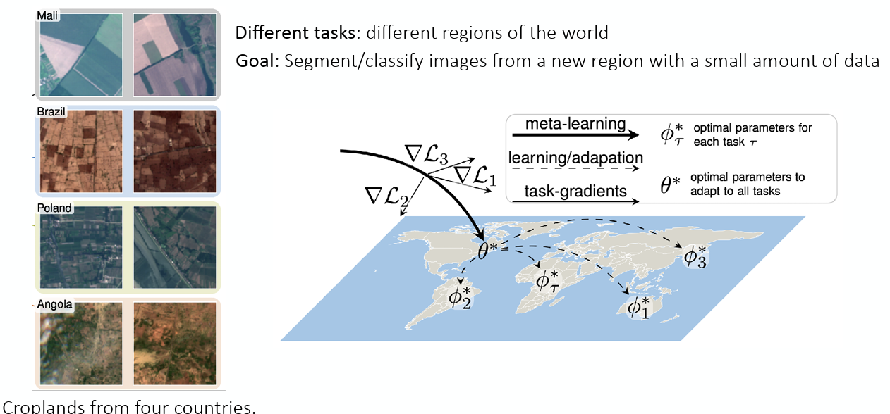 그래서 저자들이 생각한 방법은 해당 문제를 일종의 Few-shot Learning 문제로 재정의하고, 이를 meta learning을 활용해 해결하고자 한 것이다. 여기에서 Task는 각 지역에서 찍은 이미지를 분류하는 것이고, 다양한 지역 데이터와 이미지를 통해 새로운 지역의 데이터를 아주 조금(Few-shot)만 봐도, 그 지역의 특성에 맞게 빠르게 적응해서 분류를 할수 있는 모델을 학습시키고자 했다.