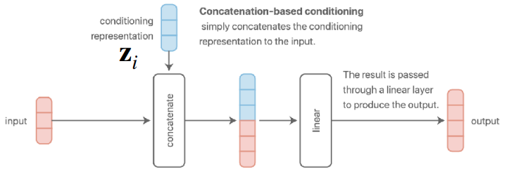 Another extreme case to consider is a structure where all parameters are shared across tasks during training. However, as illustrated in Figure 3, while parameters are shared, the task descriptor \(z_i\) would be concatenated at the FC Layer or activation stage where the output is generated. In this scenario, common elements within the tasks—or to borrow the earlier expression, the internal rules regarding the answers to multiple problems—are shared. This opens up room for better computational efficiency and size optimization.