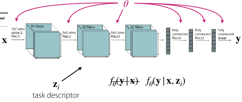 First, we address how to define the task descriptor and how to train the model for individual tasks. For ease of understanding, let’s assume the task descriptor is defined as a one-hot vector. From a model design perspective, the question then becomes: “How can we condition the model on the task to enable multi-task learning?”
