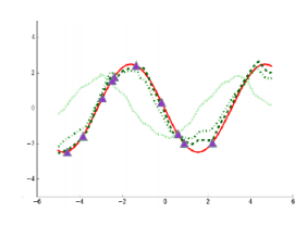 First, Figure 7 (a) represents the problem of learning multiple sine waves. Applying the structure discussed above, \(\phi_i\) corresponds to the amplitude and phase of each specific wave, while \(\theta\) represents the general knowledge that “these are sinusoidal functions.” Without knowing that the underlying function is a sine wave, we would need significant data to estimate the curve. However, knowing \(\theta\) allows us to estimate \(\phi_i\) quickly with just a few data points.