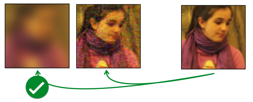 Figure 3 illustrates one of the experimental results introduced in the Zhang et al. (2018) paper, where the task is to find the image most similar to the Reference image on the far right from the two image options on the left. To the human eye, the image on the right might appear more similar. However, when using the aforementioned \(\ell_2\) distance or other standard similarity metrics like Peak Signal-to-Noise Ratio (PSNR), Structural Similarity Index (SSIM), or Feature-based Similarity Index (FSIM), the image on the left is actually evaluated as being more similar.