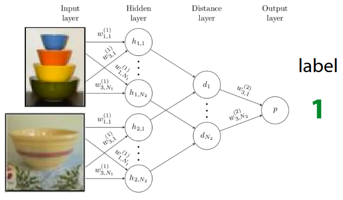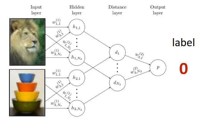 The Siamese Network, first introduced in Bromley et al. (1993), features a simple twin-like neural network architecture. It consists of two identical neural networks that can each receive an input, configured in the exact same way to share the exact same parameters. In the original paper, the Siamese Network was introduced as an example for signature verification, and it was later advanced in Koch (2015), where this architecture was applied to One-shot learning. The approach proposed in that paper was to perform Binary Classification between the training data and the test data during the meta-train phase, rather than defining a predefined Similarity Metric as introduced earlier. If the training is successful, the Siamese Network will learn to output \(1\) for similar images and \(0\) for different images, as shown in Figure 4. This model is then utilized as a kind of similarity evaluator during the meta-test phase. Therefore, when test data is given, a pairwise comparison process is conducted by pairing the test data with each image in the existing support set. In this case, if \(K\) test data points are given, a total of \(N \times K\) forward passes are executed in the Siamese Network, yielding comparative probability values for each class. It operates in such a way that the class with the highest probability value is output as the final label for the test data.