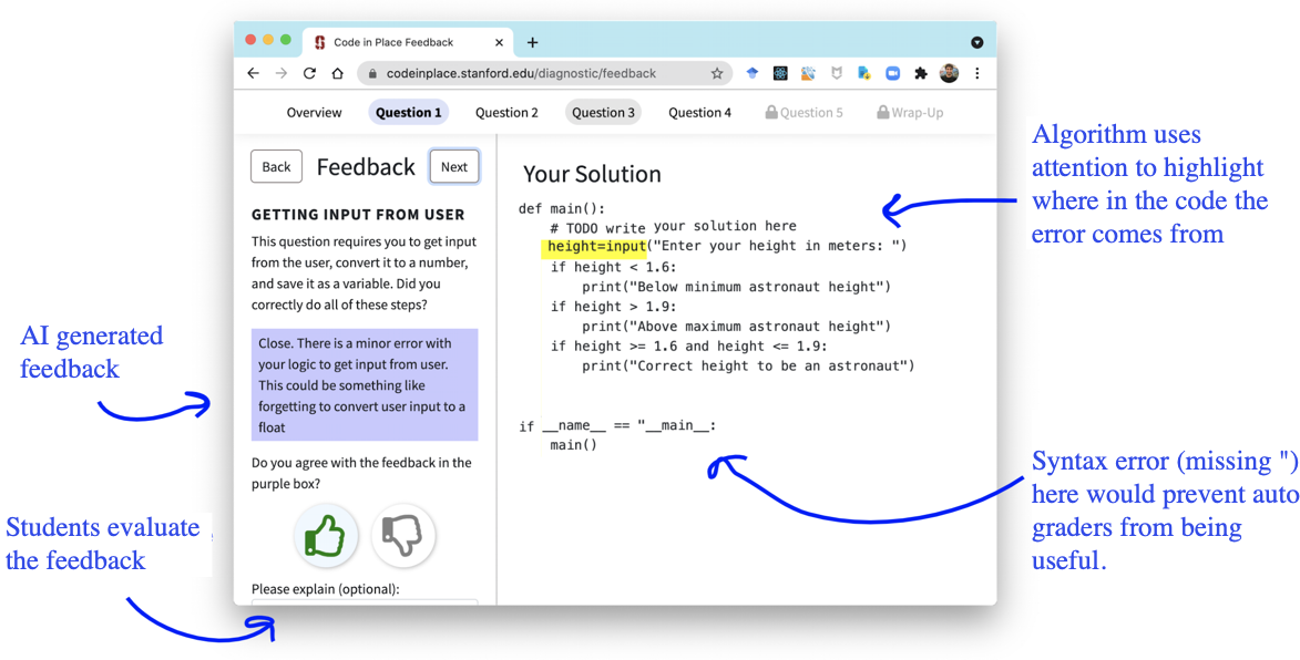 The newly introduced case study in this lecture was an application of Meta-Learning to generate feedback for students in “Code in Place”, a free, public course hosted by Stanford. (Wu et al. (2021) - Paper, Blog)